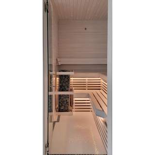 For increased longevity, the sauna can be painted with sauna friendly white wax.