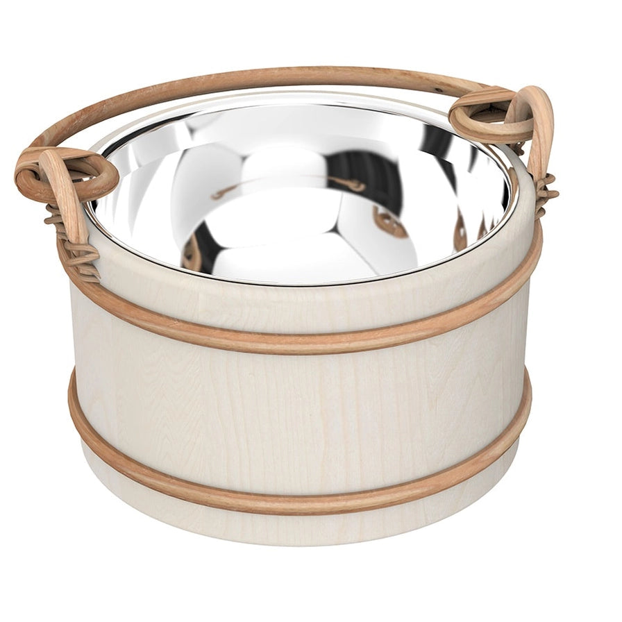 1.32 Gallon Aspen Sauna Bucket with Stainless Steel Liner delivers refined, long-wearing utility for calm, uninterrupted steam sessions. A smooth aspen exterior lends a light, modern look and stays pleasant near heat, while the seamless stainless liner forms a hygienic, leak-resistant interior that shrugs off humidity and wipes clean quickly. The generous 1.32-gallon (about 169 fl oz) volume keeps ample water ready for multiple rounds of löyly, and the broad, rounded rim supports steady, splash-controlled pours over the stones. Sized at 10.75 inches outside diameter by 6.75 inches high, it fits neatly beside the bench and remains easy to carry; the sturdy build arrives with a packaged weight of 4.63 lb. Ideal for water storage and infusion prep, this cedar-free, aspen-and-steel design blends contemporary style with dependable performance for daily sauna routines.
