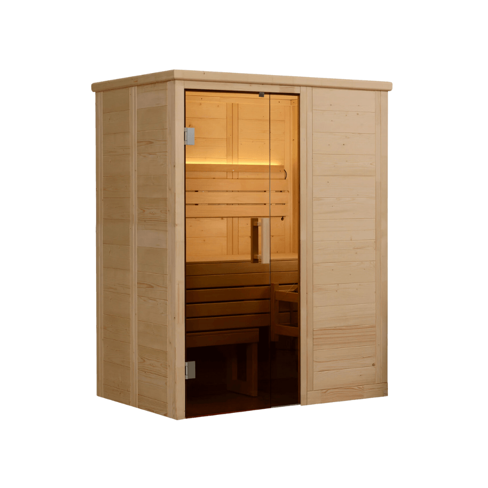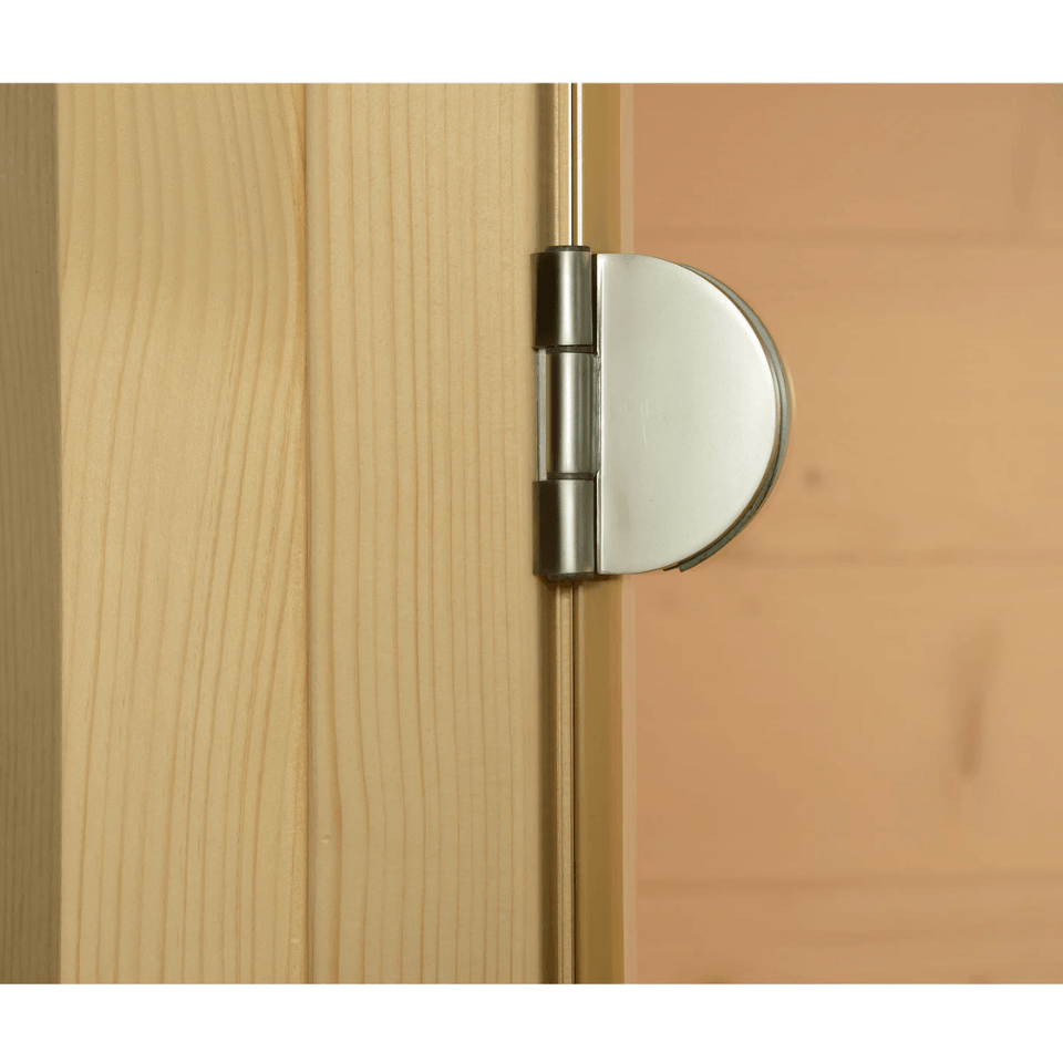 The Hillsboro indoor sauna offers a compact yet spacious environment for two, blending seamlessly into your home with its stylish design. Crafted from elegant spruce lumber, this sauna presents a vertical and horizontal construction, hiding all visible fasteners for a sleek look. Enjoy the warmth of up to 185ºF, thanks to the efficient Harvia 6kW electric heater, which can be set to heat up immediately or delayed up to eight hours for your convenience. Designed to utilize your existing flooring, the Hillsboro is the epitome of a relaxing sauna experience in any chosen room.