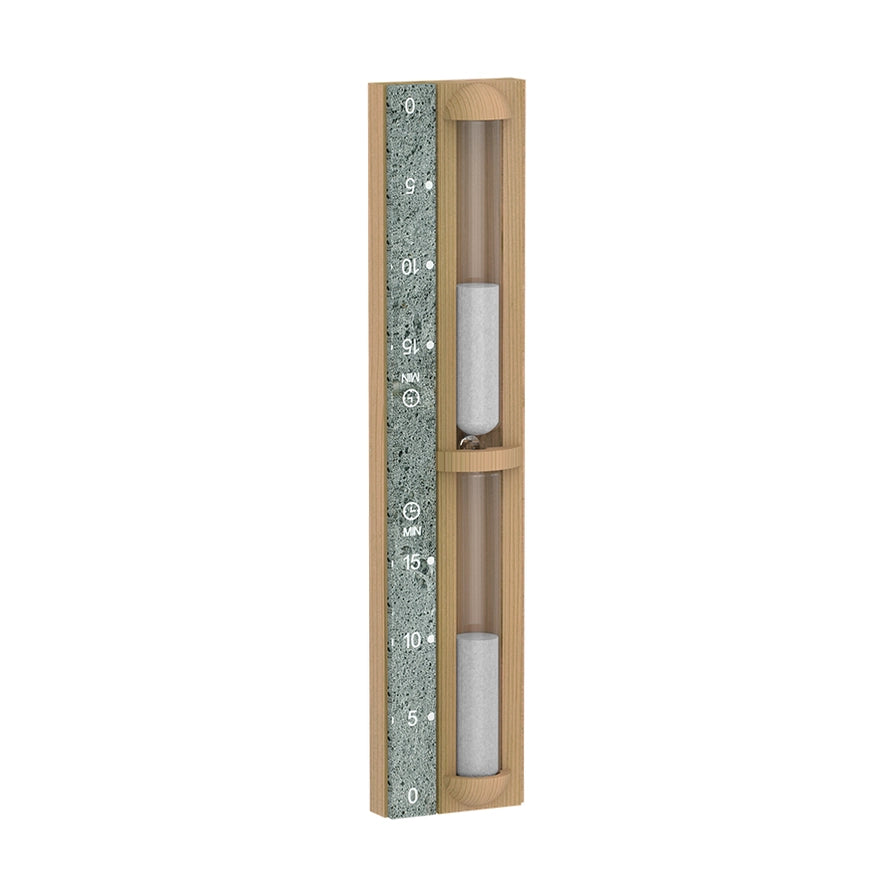 Cedar sauna sand timer that keeps your session calm and consistent—this hourglass features a smooth cedar frame with a natural stone inlay and clear minute markings, so you can settle in without checking a clock. It’s silent, simple, and easy to flip between rounds—ideal when you want to focus on heat, breath, and recovery instead of keeping time in your head.