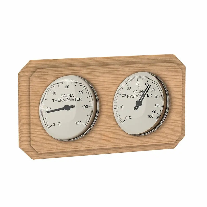 Cedar Encased Thermometer/Hygrometer C-F (10″ x 5 1/2″) brings reliable, analog precision to sauna climate control with a dual-scale design that measures both temperature and humidity in one natural wood frame. Crafted from heat- and moisture-resistant cedar, it delivers long-lasting durability while enhancing the warmth and authenticity of any traditional sauna interior. The clear glass face and bold, easy-to-read dials allow quick checks from the bench, helping you maintain perfect balance between heat and steam for an ideal löyly experience. With its compact 10-inch form and smooth finish, this combination gauge installs cleanly on any wall, adding functional elegance to residential or commercial saunas. Built to perform without batteries, it offers quiet dependability and the timeless feel of handcrafted cedar craftsmanship.