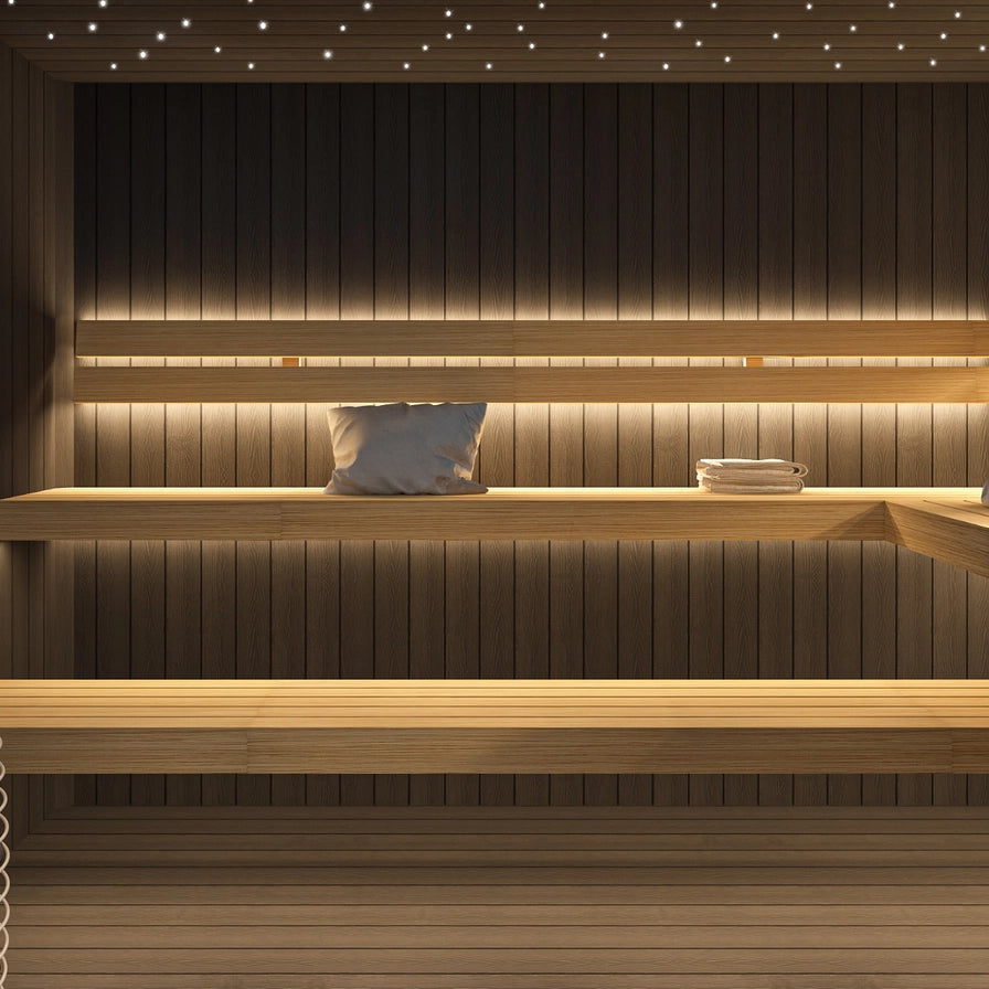 • Trim: Comprehensive trim options including base, corner, and crown molding to enhance the sauna’s appearance.