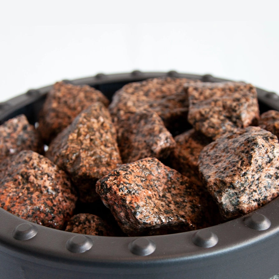 Enhance your sauna's ambiance with Decorative Red Granite Sauna Heater Stones. Specifically designed to be used as decorative elements on the top layer of your sauna heater, these red granite stones create a warm and inviting atmosphere. They add a striking visual element to your sauna, making it not just a place for relaxation but also a stylish retreat. Perfect for all heater models.