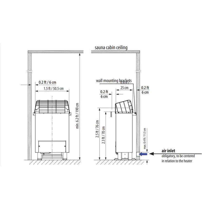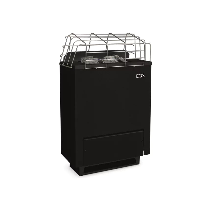 Handcrafted in Germany, this heater features a robust steel body finished in a modern matte black. Despite its compact footprint, it offers fast, efficient heating with built-in safety features and smart design for easy maintenance. It can be wall-mounted or freestanding using an optional floor stand, providing flexibility in any sauna environment.