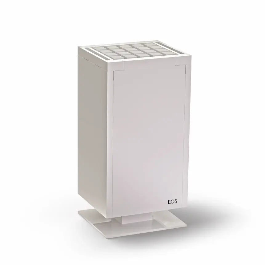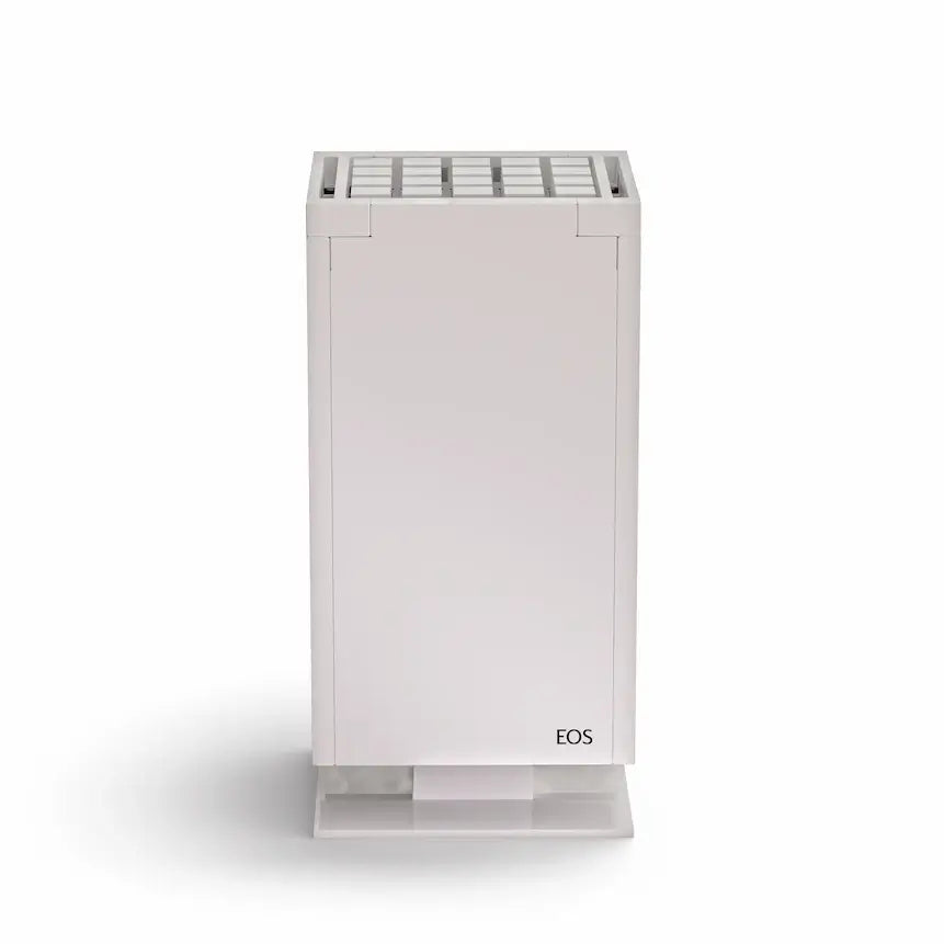 The EOS Mythos S35 7.5kW – White sauna heater is the perfect blend of elegant design and high-performance engineering. Handcrafted in Germany with a smooth white powder-coated finish, it offers clean, modern aesthetics that elevate any sauna interior. Designed for rooms up to 420 cu. ft., this heater delivers rapid and evenly distributed heat using EOS's patented Three Shelf Technology, ensuring exceptional comfort at every level of your sauna.