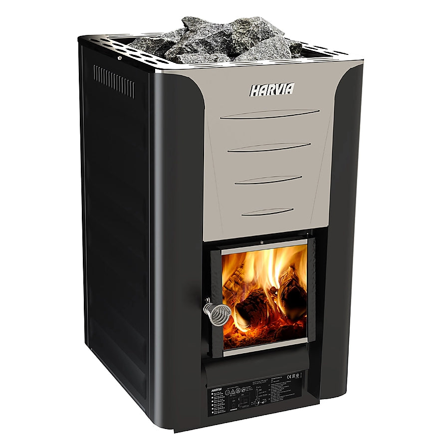 The Harvia 20 Pro is a powerful wood-burning sauna stove for medium-sized saunas. Its large stone compartment delivers strong, steady steam, while the glass door lets you enjoy the fire's warm glow.