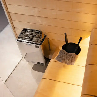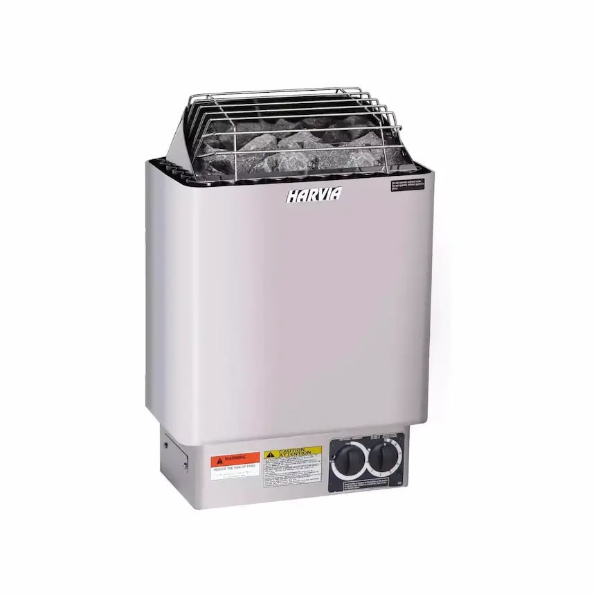 The Harvia KIP-30B is a 3kW electric sauna heater designed specifically for home saunas up to 130 cubic feet (ACF). Featuring a built-in control panel, this sauna heater offers convenience and ease of use directly on the unit itself. Crafted from durable stainless steel and equipped with industrial-grade heating elements, the KIP30B ensures reliable performance and efficient heat distribution. It is ideal for creating an authentic Finnish sauna experience with its ability to generate intense, penetrating heat.