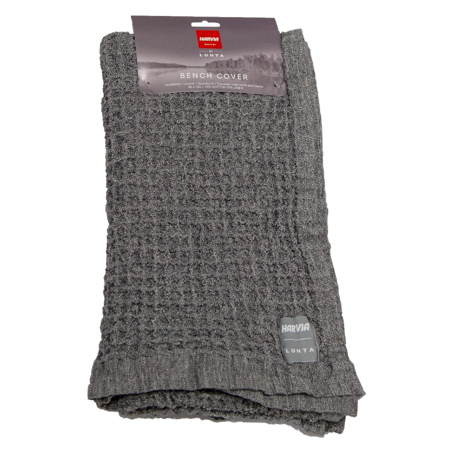 Harvia - Sauna Bench Cover (17.72" × 59.06") Gray is a long-format textile designed to bring cleaner, more comfortable seating to your sauna benches. Measuring 45 x 150 cm, each cover lays out a defined personal area, creating a soft barrier between skin and wood while helping protect the surface from sweat and everyday wear. The waffle-woven blend of 75% cotton and 25% linen feels pleasantly textured yet gentle on the skin, staying comfortable in both high heat and humidity. Its quick-drying structure supports good hygiene and makes it easy to refresh your setup between sessions. The timeless gray tone and modern waffle pattern blend effortlessly with classic plank rooms and contemporary spa interiors, so your sauna looks as polished as it feels every time you sit down to relax.
