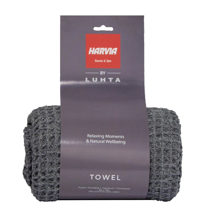 Harvia - Sauna Towel (31.50" × 62.99") Gray is a generously sized waffle-textured towel created to bring both comfort and clean design to your sauna routine. Woven from a durable blend of 75% cotton and 25% linen, it feels soft and substantial on the skin while remaining breathable in high heat and humidity. The 31.50" × 62.99" dimensions give you plenty of coverage to use it as a full-body wrap, a roomy bench cover, or a combination of both during longer sessions. Its modern gray tone and structured weave add a subtle, rugged elegance that pairs easily with any wood interior or spa-inspired décor. Easy to machine wash at 60°C, this towel is built for regular use, providing a dependable, quick-drying textile that supports a more comfortable, polished sauna experience.