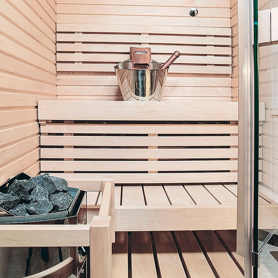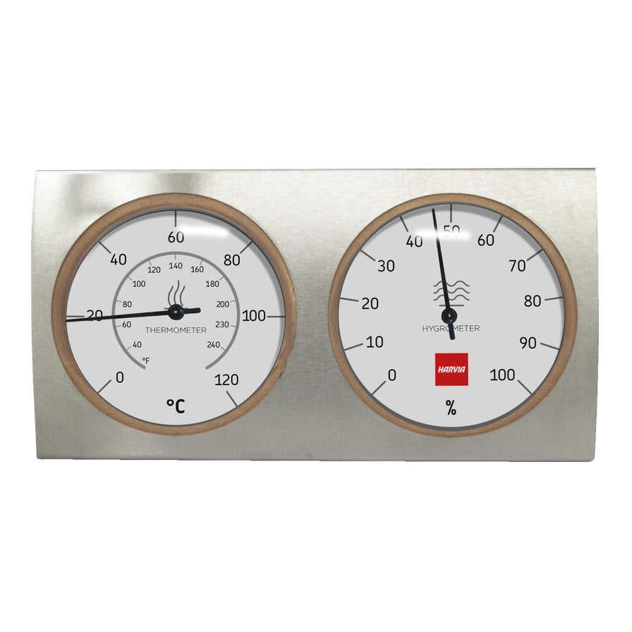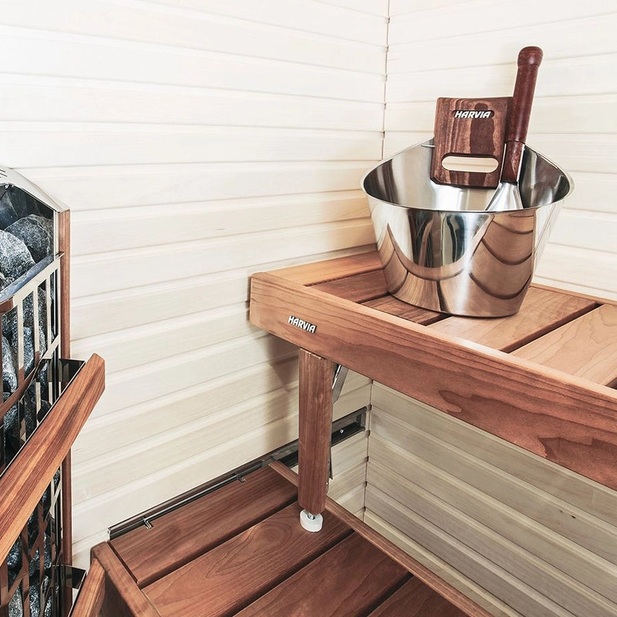 Harvia Stainless Steel Accessory Set unites precision, comfort, and modern elegance in one complete sauna collection. Crafted from polished stainless steel, the bucket and dipper pair provide lasting durability with a clean, contemporary aesthetic that complements any interior. The matching thermometer and hygrometer offer accurate, easy-to-read feedback on temperature and humidity, helping you maintain the ideal sauna climate. A movable head and neck rest enhances relaxation, supporting proper posture while you unwind. To finish the ritual, the included 2-ounce bottle of Sauna Place pure Eucalyptus Oil brings a refreshing, natural aroma that invigorates each session. Durable, coordinated, and ready for daily use, this Harvia set transforms routine steam into a balanced, restorative experience of comfort, control, and Scandinavian craftsmanship.