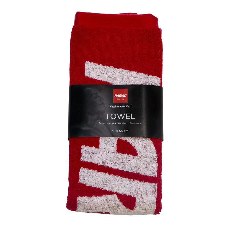 Harvia - Towel (13.78" × 21.65") Red is a compact, premium cotton towel designed to add a touch of luxury to everyday sauna or gym routines. Woven from 100% cotton in dense 600 GSM terrycloth, it feels plush in the hand while drawing moisture away from the skin quickly and efficiently. The 13.78" × 21.65" size is ideal for use as a hand towel, small workout companion, or folded as a hygienic seat cover on the sauna bench. Its rich red tone stands out without looking overpowering, making it easy to keep track of among other textiles. Responsibly produced in Europe and certified to OEKO-TEX® standards, this towel supports higher expectations for material safety, comfort, and durability, round after round.