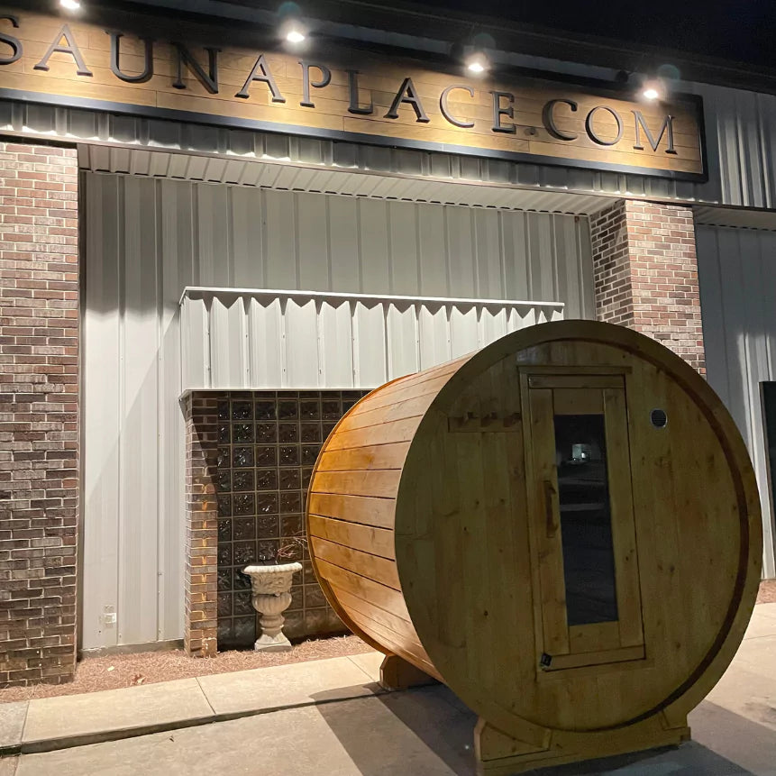 This is a former showroom display unit of the Heritage™ 6×6 Pine Barrel Sauna, offered at a discounted price. Built from Cedartone-stained pine and featuring two interior benches, a tempered glass door, and an exterior towel hanger, this unit comes fully assembled with a Harvia Kip 80B electric sauna heater included. Handmade in Ontario, Canada, this porch-free model was lightly used in a showroom and remains in very good condition. Ideal for up to 4 people, it’s a space-saving and stylish addition to any outdoor setting.