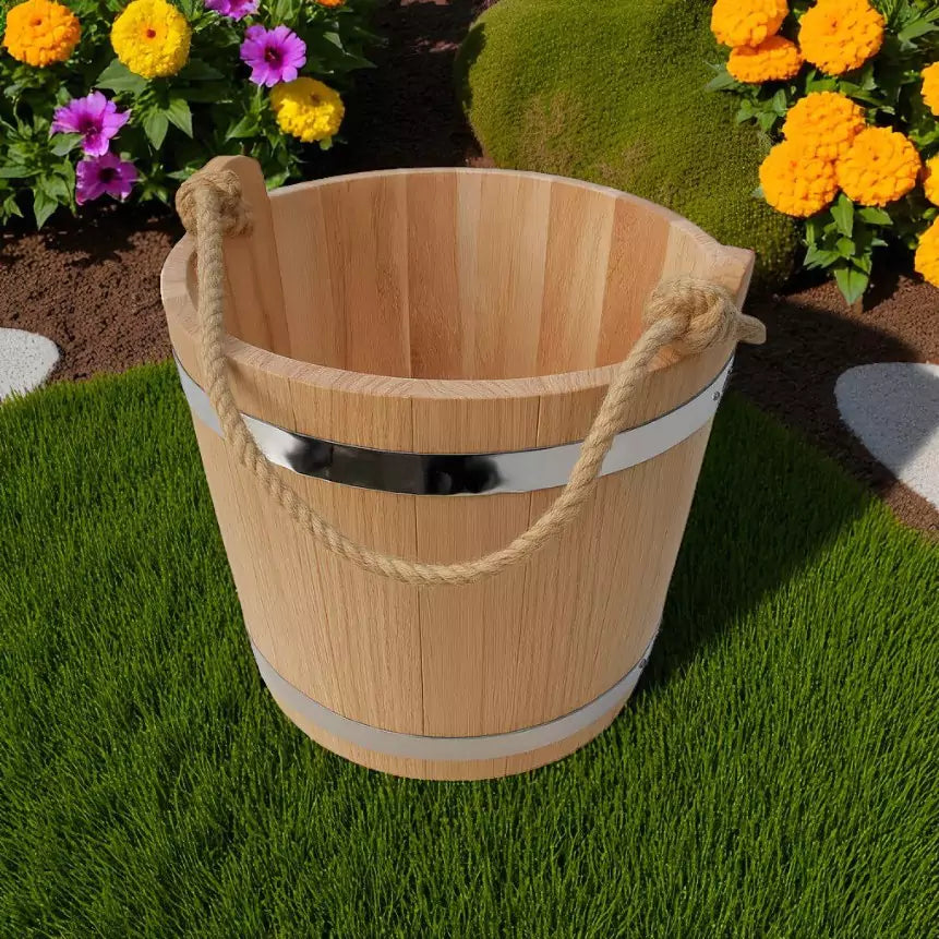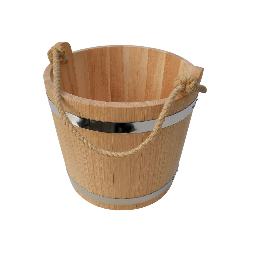 Heritage Sauna Bucket 4 Gallon - Oak brings traditional craftsmanship and session-ready capacity to the heart of your hot room. Built from solid oak with a classic round form, this generously sized bucket holds up to 4 gallons (15 liters), keeping ample water on hand for steady, comfortable löyly without frequent refills. The smooth natural finish highlights the wood’s grain while resisting sauna humidity and daily heat cycles. Sized for practical handling at 13.4 inches in diameter and 13.8 inches in height, it tucks neatly beside the bench yet remains easy to lift, carry, and refill. Thoughtfully balanced proportions promote confident, splash-controlled pours over the stones, and the durable construction is designed for long service with simple care. For users who value authenticity, enduring materials, and reliable performance, this oak bucket anchors a calm, well-prepared sauna ritual.