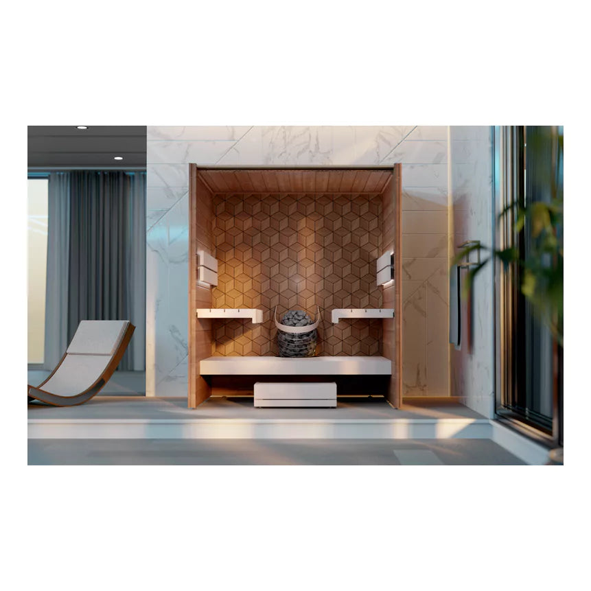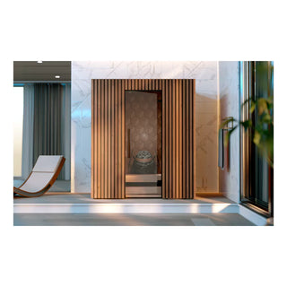 The Leil Como 3-180 Indoor Sauna offers a premium, spa-like experience in a compact indoor footprint. Crafted in Estonia, this sauna features high-grade ThermoWood® wall panels, smooth Aspen benches, and a sleek tempered glass front that balances traditional sauna comfort with modern interior aesthetics. Designed to seat three users comfortably, it’s the perfect solution for families or small groups looking to bring wellness home.