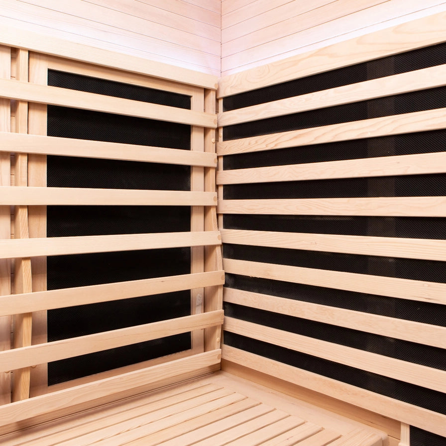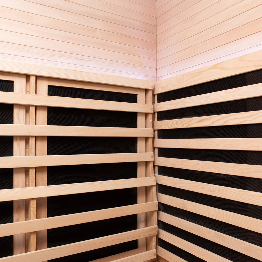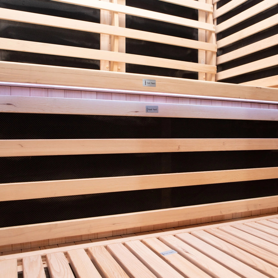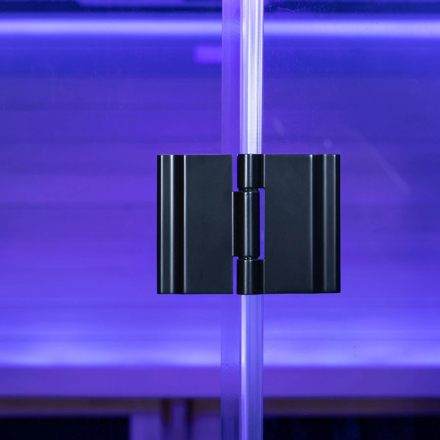 Inside, the fully insulated Canadian Hemlock cabin features recessed top and bottom panels for a built-in look and a low-EMF carbon heater array delivering around 1750 W of deep warmth. The 8mm bronze privacy glass is finished with a solid wood handle (11" spacing) and a right-hand door swing. With WiFi controls and a layered LED suite, we built this to be a permanent shared sanctuary rather than a temporary experiment.