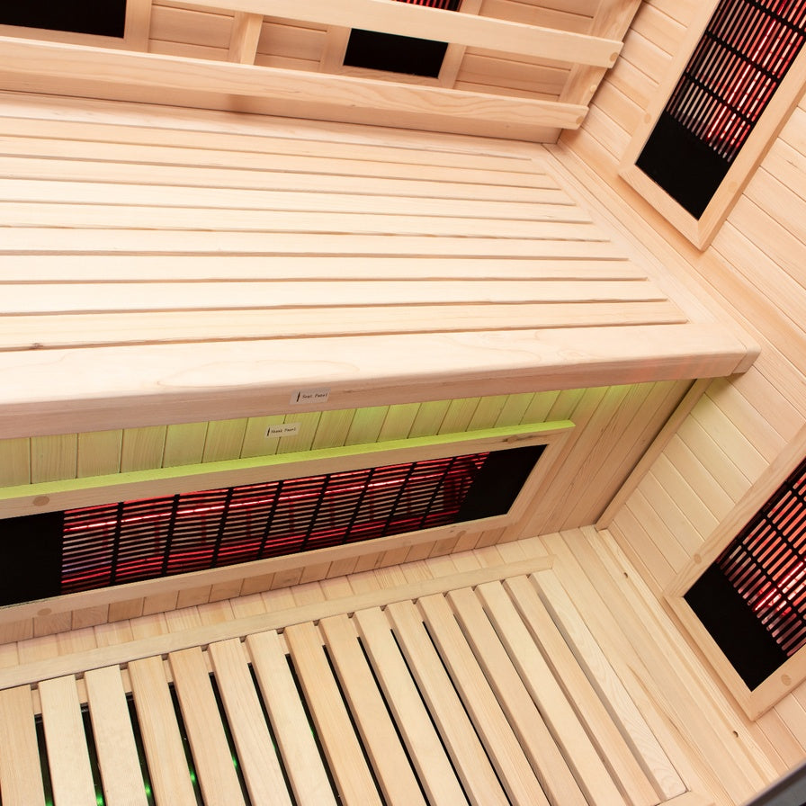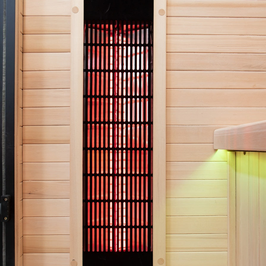 We designed the Heritage Lux IR Noir as our "2-person hot rod" for biohackers and athletes who want more intensity per inch. Packing around 3045 W of power into a compact footprint, it delivers the highest watt density in our entire infrared line—all wrapped in a stunning matte black architectural shell with recessed top and bottom panels.