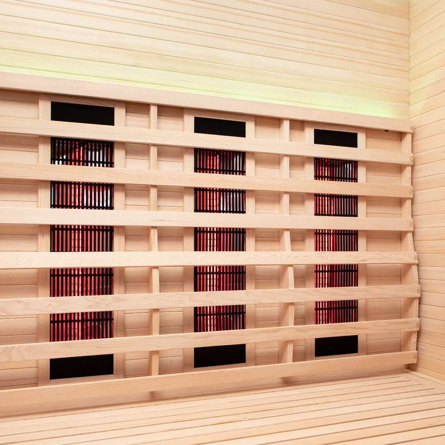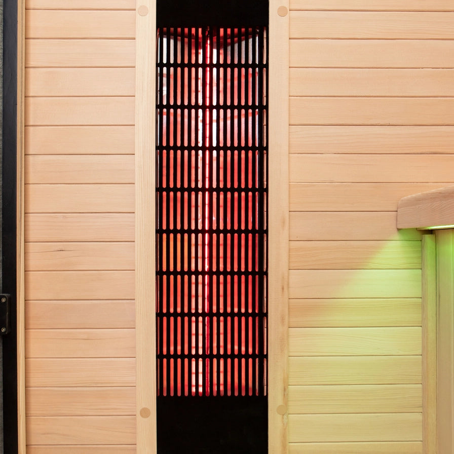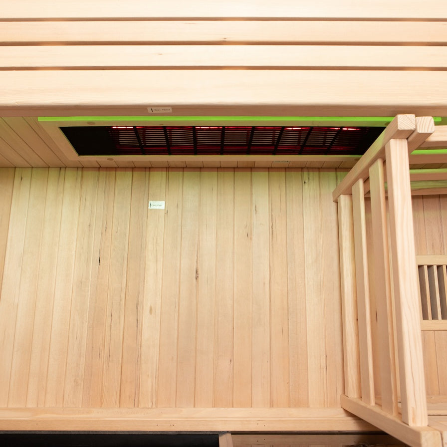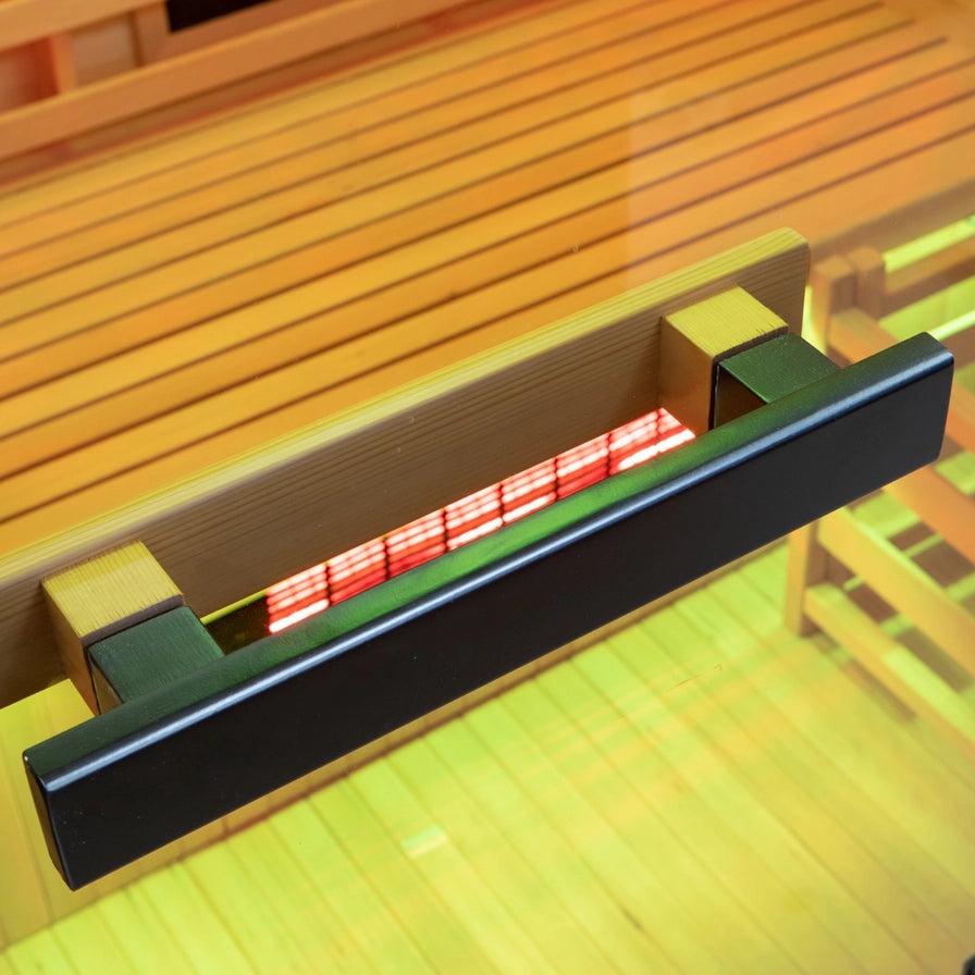 We designed the Heritage Lux IR Noir Hybrid for athletes and design-driven homeowners who refuse to choose between modern infrared recovery and traditional high-heat bathing. As our 3-person hybrid showpiece, it features a fully insulated matte black cabin with recessed top and bottom panels, transforming it into a high-performance piece of architectural furniture.
