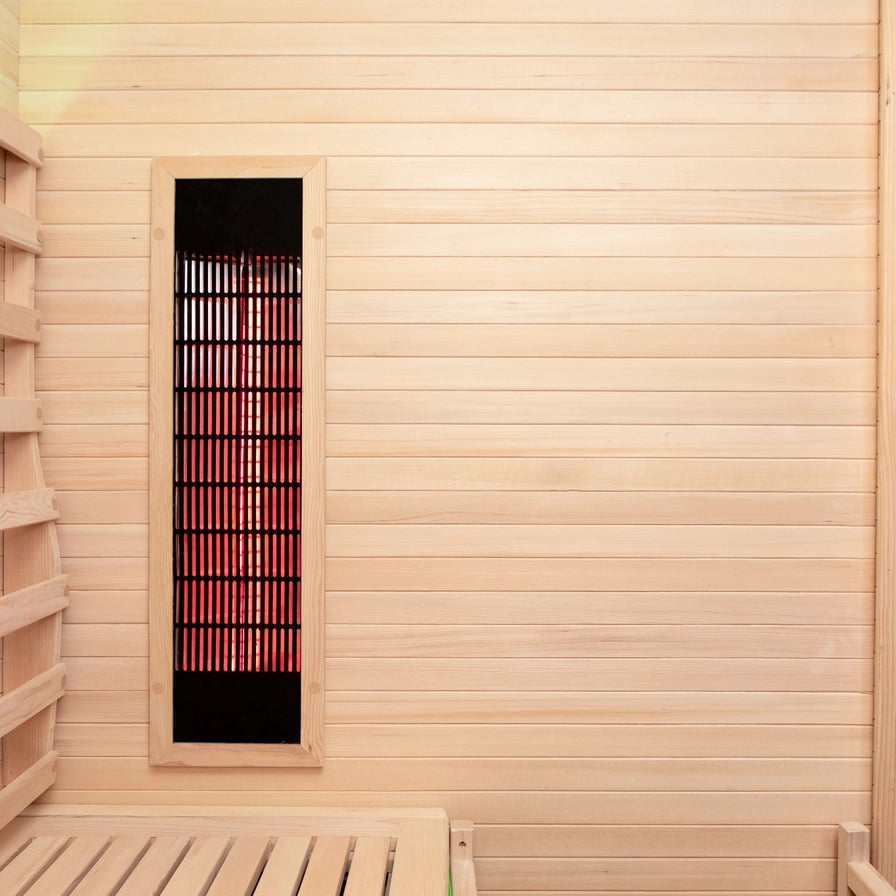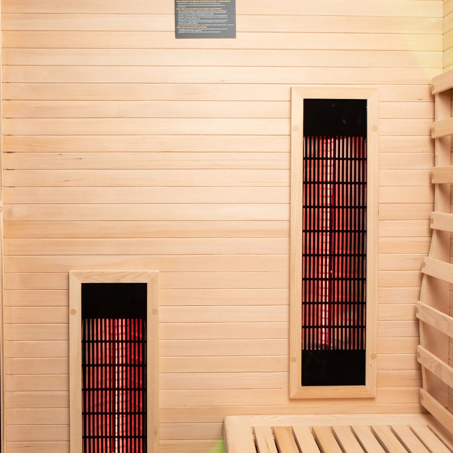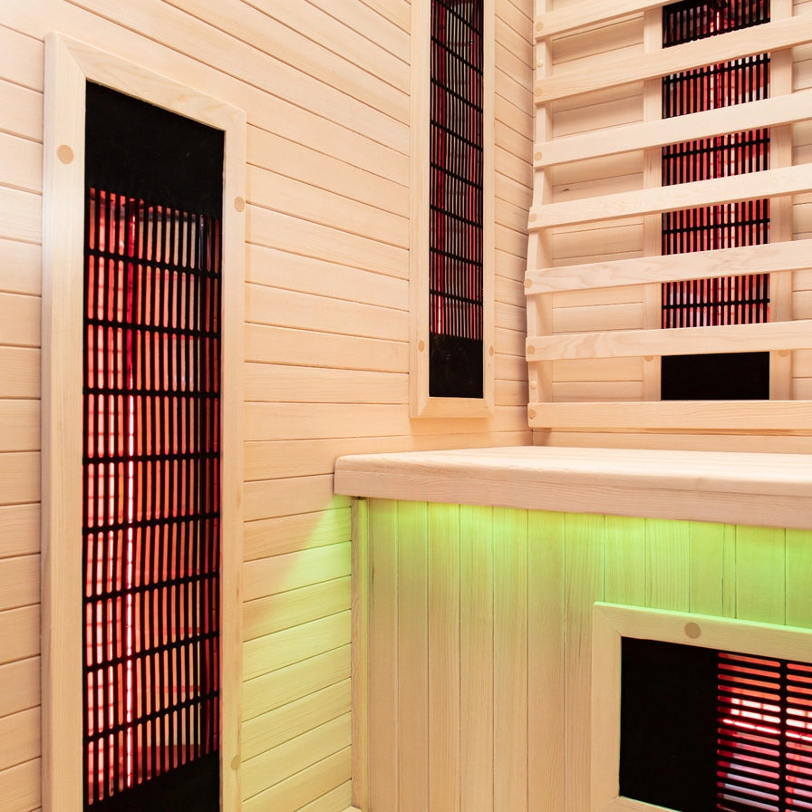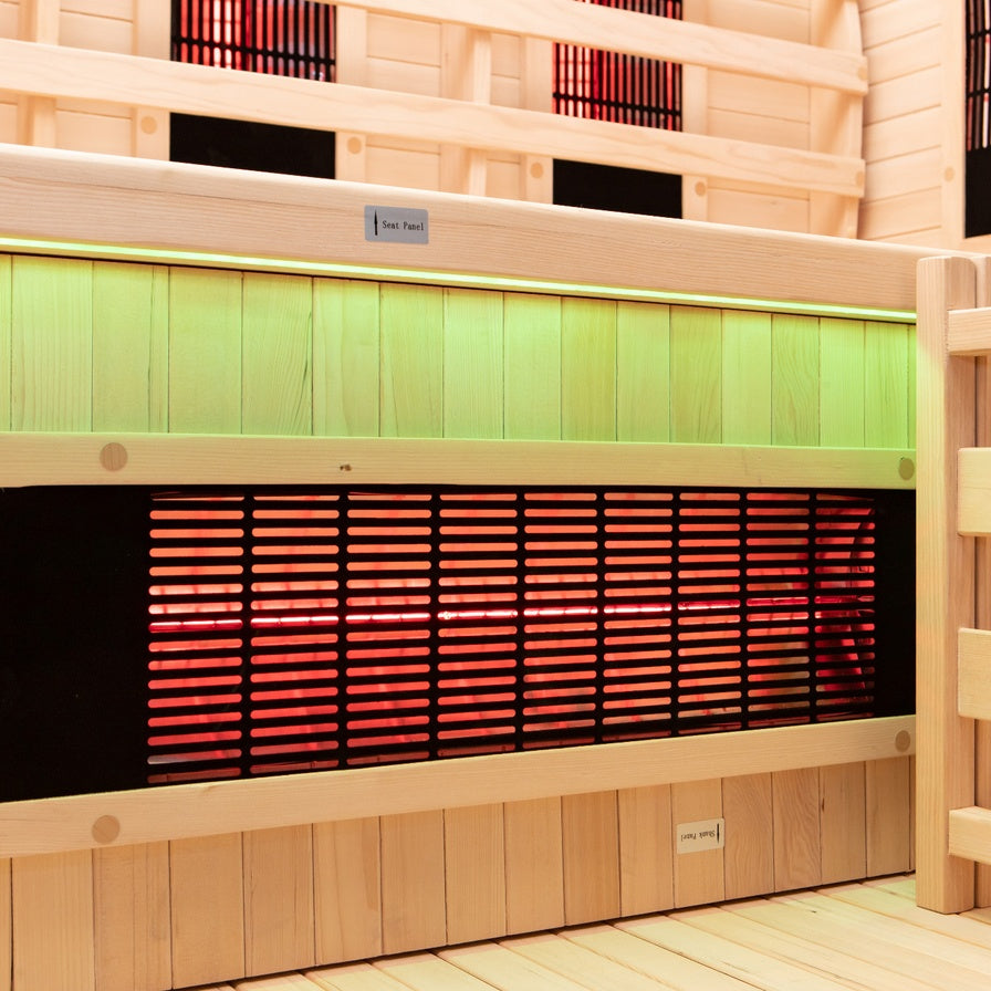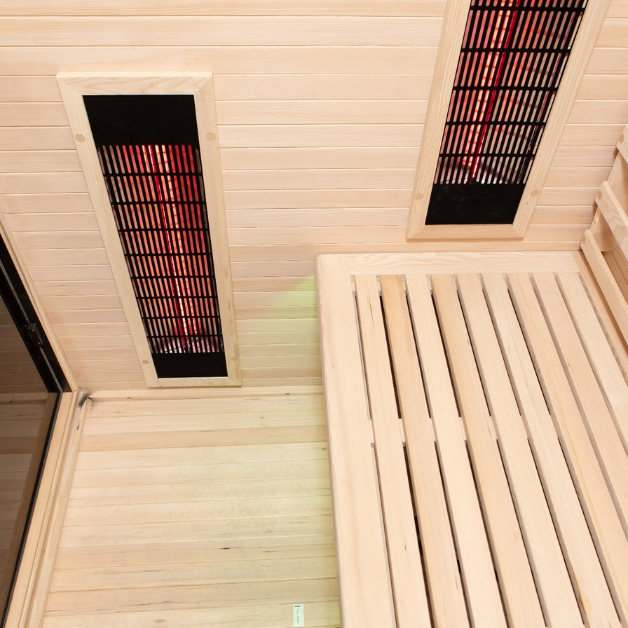 We designed the Heritage Lux IR Noir Hybrid for athletes and design-driven homeowners who refuse to choose between modern infrared recovery and traditional high-heat bathing. As our 3-person hybrid showpiece, it features a fully insulated matte black cabin with recessed top and bottom panels, transforming it into a high-performance piece of architectural furniture.