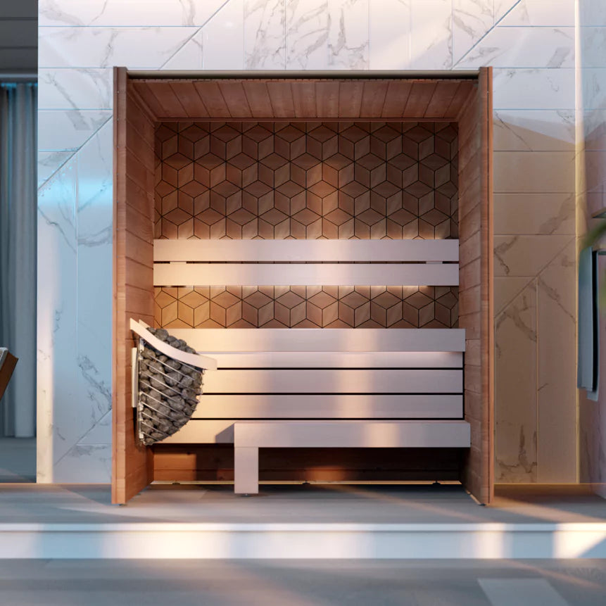 The Leil Como 3-180 Indoor Sauna offers a premium, spa-like experience in a compact indoor footprint. Crafted in Estonia, this sauna features high-grade ThermoWood® wall panels, smooth Aspen benches, and a sleek tempered glass front that balances traditional sauna comfort with modern interior aesthetics. Designed to seat three users comfortably, it’s the perfect solution for families or small groups looking to bring wellness home.