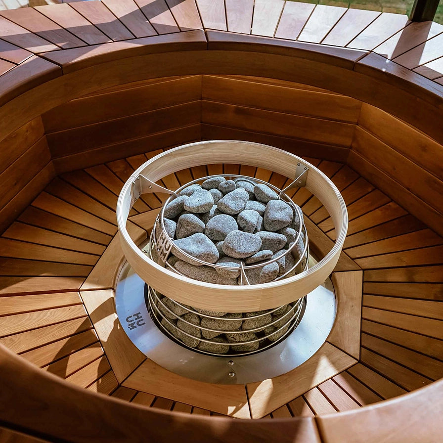 HUUM Flange HM – Hive Mini Series Embedding Flange provides a clean, architectural finish when your HIVE Mini sauna heater is set partially into the bench. Sized with an 18.31-inch inside diameter and 24.61-inch outside diameter, this stainless steel trim ring neatly covers cut wood edges, protecting them from wear while creating a smooth, visually unified opening around the heater. The corrosion-resistant metal stands up to sauna heat and humidity, ensuring the edge detail stays straight, stable, and attractive over years of use. By framing the heater with a precise circular border, it highlights the HIVE Mini’s design and eliminates rough transitions between bench and stove. Easy to position and secure with the included instructions, this stainless steel embedding flange is the finishing touch that makes a built-in HIVE Mini installation look truly professional.