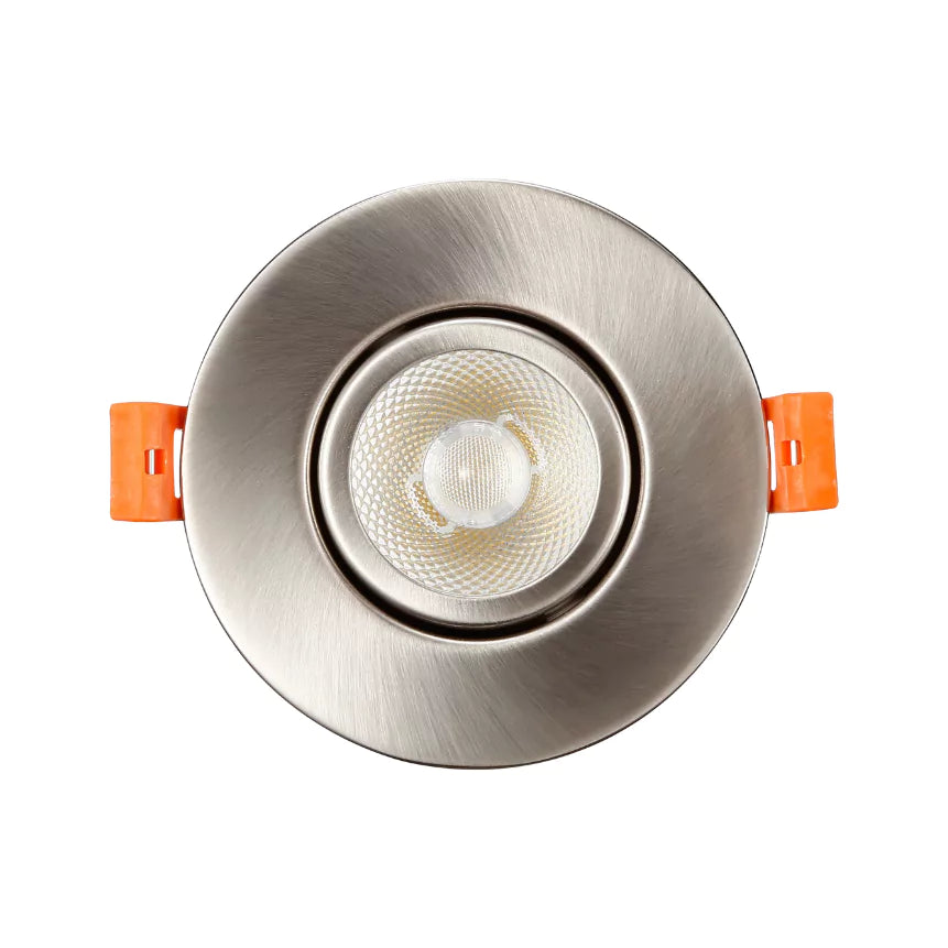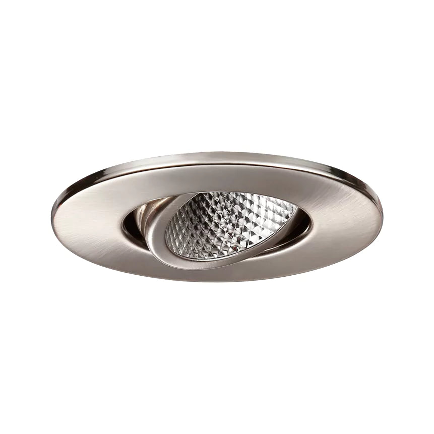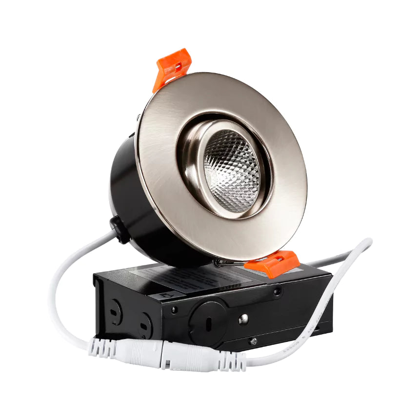 The LED Recessed Light in Satin Nickel is a compact, high-efficiency fixture ideal for small ceiling spaces and precise directional lighting. Its gimbal design allows the light to pivot for use in sloped ceilings or focused areas, while the 5CCT switchable color temperatures make it adaptable to any application — from soft ambient lighting to bright task illumination.