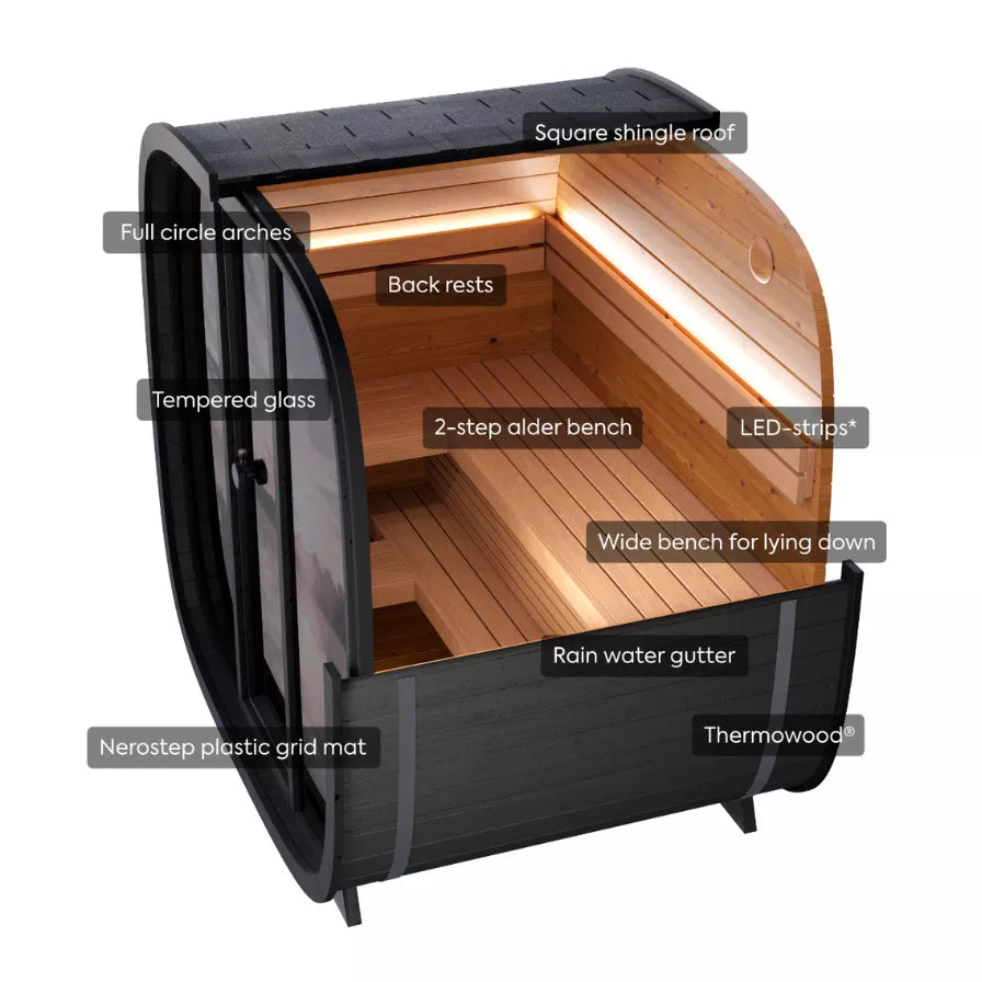 The Leil Saunas Black Cube Outdoor Sauna redefines outdoor wellness with a bold, modern design and unmatched functionality. Combining Nordic craftsmanship with thoughtful details, the Black Cube stands out for its comfort-enhancing layout, durable materials, and premium aesthetic. From its sleek black-tinted glass to its spacious L-shaped benches and superior ventilation system, this cube-style sauna is engineered to elevate your daily wellness ritual. Whether nestled into your backyard or set atop a scenic terrace, the Black Cube offers an immersive retreat with every session.