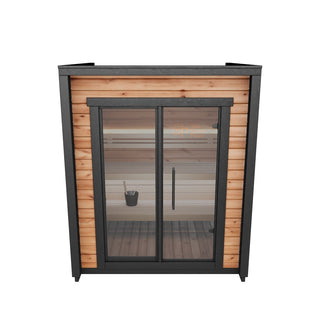 The Leil Saunas Patio XXS 3 Person Outdoor Sauna Kit is a stylish and compact outdoor sauna from the Patio Sauna Series, expertly designed to elevate any outdoor living space—whether placed by the pool, on a terrace, or nestled into a backyard garden. Built with thermally modified wood for exceptional durability and long-term weather resistance, this premium outdoor sauna delivers years of reliable, restorative use.