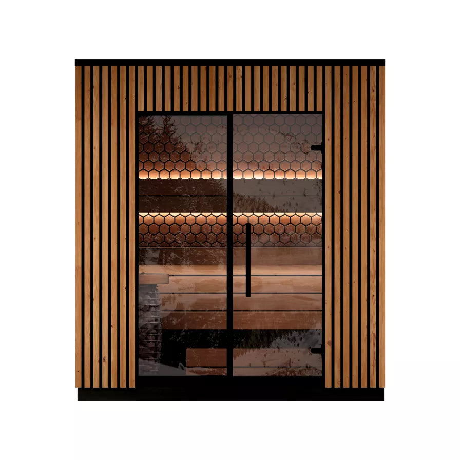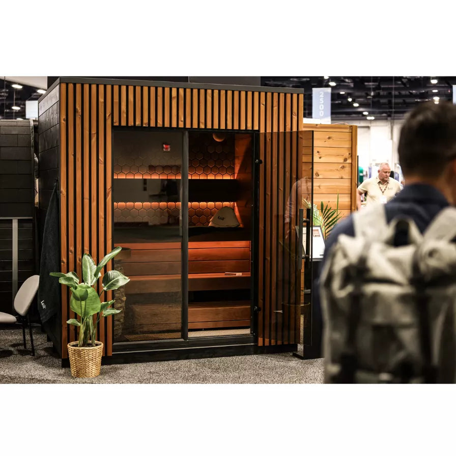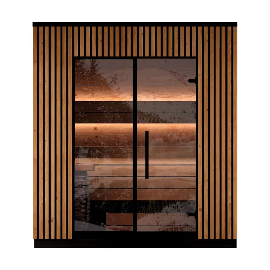 The Viva 210 from Leil Saunas delivers authentic steam bathing in a modern, compact design made for everyday use. Ideal for couples or small groups, this four-person outdoor sauna features premium ThermoWood construction and a refined Thermo-Alder interior for optimal durability, beauty, and comfort. With its versatile heater compatibility and DIY-ready design, the Viva 210 is a complete wellness solution that transforms any backyard or terrace into a personal sanctuary.