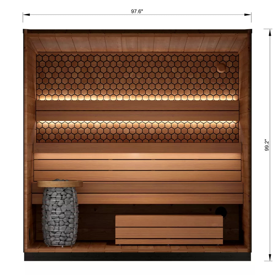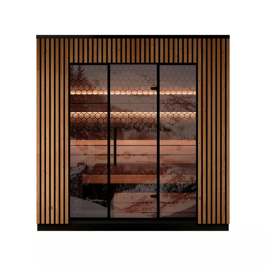 The Leil Saunas Viva 250 redefines compact luxury with a beautifully modern layout, handcrafted in Estonia from 100% ThermoWood®. This 5-person outdoor sauna blends striking design with a high-performance build — offering a smooth, spa-like interior, exceptional durability, and an authentic Finnish sauna experience powered by your choice of electric or wood-burning heater. Premium thermo-alder benches, advanced airflow engineering, and a weatherproof EPDM roof make Viva 250 both a design statement and a wellness retreat you can enjoy year-round.