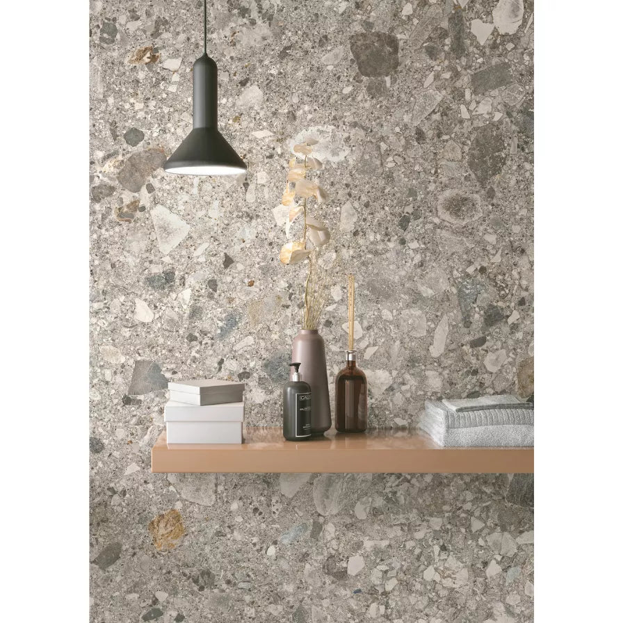 This standout made-in-Italy tile can be used as an accent wall or accent floor with the total dimensions of 31.5 in x 63 in per box. It is also suitable for application in showers and steam showers to create a truly showstopping space.