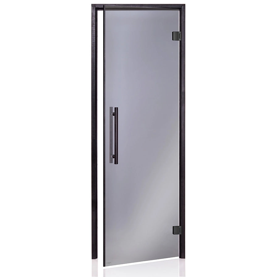 Enhance the look and functionality of your sauna with the Premium Black All Glass Sauna Door featuring sophisticated grey glass. This door offers a modern, sleek aesthetic with its tinted grey glass panel set within an anodized black metal frame. Measuring 24 1/2″ x 72 1/4″, the door is pre-hung in a 3 5/8″ deep alder jamb, ensuring durability and ease of installation. The door includes a stylish anodized black metal handle with a black-painted wood grip, providing both a refined appearance and practical function. This door is an excellent choice for those looking to add a touch of elegance to their sauna space.