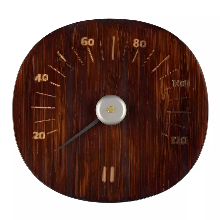 Rento Dark Bamboo Sauna Thermometer blends eco-conscious craftsmanship with refined Scandinavian design for precise, natural sauna temperature control. Made in Finland from sustainably sourced dark bamboo, it offers accurate Celsius readings that help you maintain the ideal heat range for safety, comfort, and relaxation. The minimalist design and rich, organic tones bring warmth and balance to both modern and traditional interiors, enhancing the sauna’s calming aesthetic. Lightweight and easy to mount, this durable thermometer withstands high heat and humidity while preserving its elegant finish. Functional, sustainable, and beautifully simple, the Rento Dark Bamboo Sauna Thermometer embodies Finnish quality and timeless sauna tradition.