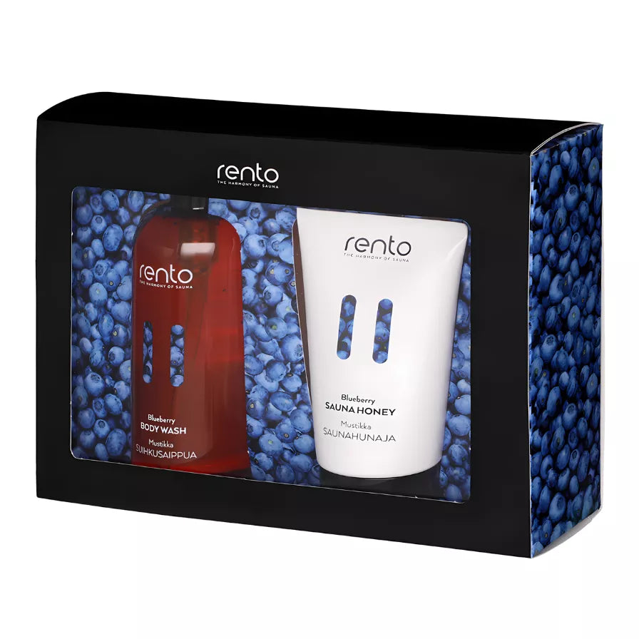 Rento Gift Box with Blueberry Body Wash and Sauna Honey combines two Finnish-made essentials for a complete, skin-softening sauna ritual. The 400 ml body wash cleanses gently with a light blueberry aroma that refreshes without overpowering, while the 150 ml sauna honey nourishes as heat opens pores, leaving skin smooth, hydrated, and naturally radiant. Both vegan-friendly formulas are crafted in Finland to uphold the purity and quality of authentic Nordic wellness traditions. Ideal for gifting or self-care, this coordinated set transforms everyday cleansing into a calm, restorative experience that balances refreshment with lasting comfort before and after sauna sessions.