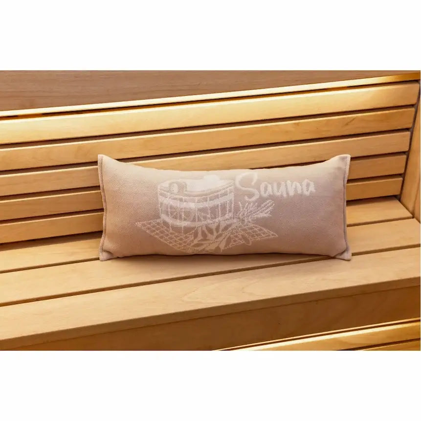 Sauna pillow – beige is designed to make every heat session feel more relaxed, supported, and inviting. Crafted in Lithuania from 100% cotton with a refined jacquard weave, it offers a soft, plush surface that feels gentle against the skin, even during longer stays on the bench. The 50 cm x 22 cm (19.7" x 8.7") format provides generous support for the head, neck, or knees without crowding your seating area. Cotton fibers help absorb perspiration and dry quickly, so the pillow is ready again soon after use. Its calm beige tone blends effortlessly with light or dark woods and other natural textiles, doubling as a tasteful accent in the lounge beside your sauna or as a cozy travel cushion. Non-allergenic and easy to care for, it’s a simple upgrade to everyday relaxation.