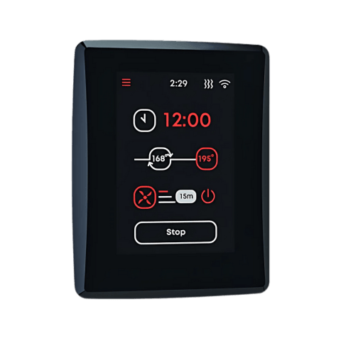 The Saunum AirIQ Wi-Fi is a smart sauna heater control that lets you adjust temperature, set schedules, and choose from three preset sauna modes. The built-in Wi-Fi allows remote operation through the Saunum mobile app, with real-time notifications for heating status, open doors, and overheating protection. It supports smart home integration via ModBus and is UL-listed for safety. Sauna heater sold separately.