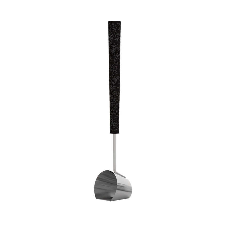 Stainless Steel Sauna Ladle with Black Junglefire Wood Handle delivers calm, precise steam control with a distinctive modern edge. A deep, polished stainless scoop guides water in a steady sheet for consistent löyly, while the slim rectangular wood handle—matte black and engraved in the striking junglefire pattern—adds secure, tactile grip even when palms are warm. Long yet lightweight, the ladle’s 19.61 × 3.98 × 3.11 inch profile and 0.66 lb weight keep your hand comfortably away from rising heat and reduce wrist strain during repeat rounds. Built to withstand daily humidity and temperature swings, it wipes clean quickly after infusion prep and pairs naturally with classic cedar rooms or glass-and-wood interiors. Choose it to blend durability, reach, and unmistakable style in a tool that makes every pour smooth, quiet, and intentional.