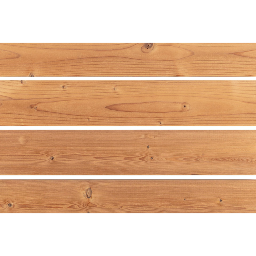 Thermo-Spruce SHP Sauna Wood - Bench Board 5/4×4 is crafted from modified thermal spruce, offering a rustic, knotty aesthetic with exceptional durability and dimensional stability. The SHP profile features a thick, square-edge design that stays comfortable to the touch in high-heat environments, making it an ideal choice for substantial and long-lasting sauna seating.